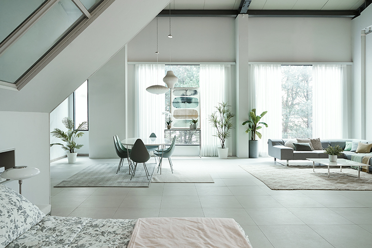 자연광이 변하는 위치를 치밀하게 계산하여 제작된 라이프 스타일의 세트장입니다.